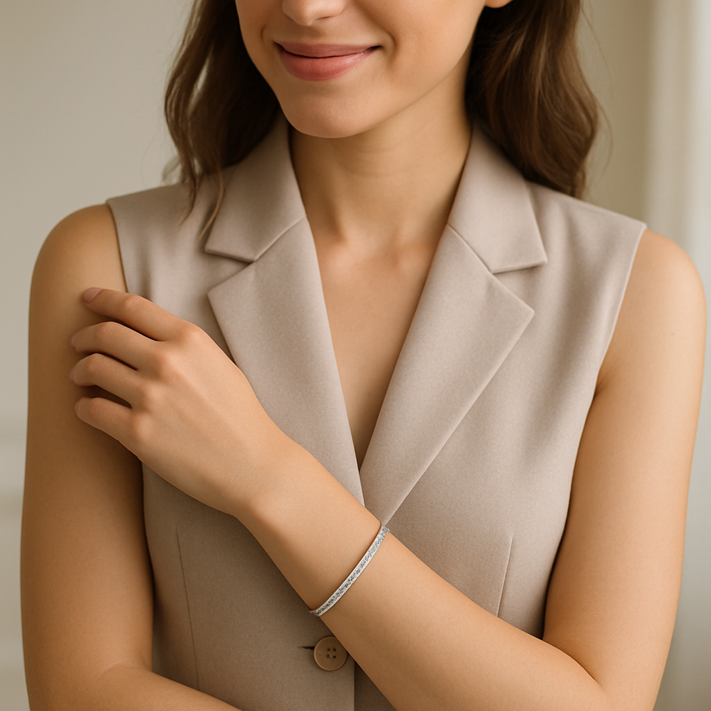 Un éclat pur tout en finesse. Ce bracelet argenté est orné d’un alignement de strass scintillants, pour une touche de lumière discrète et élégante.