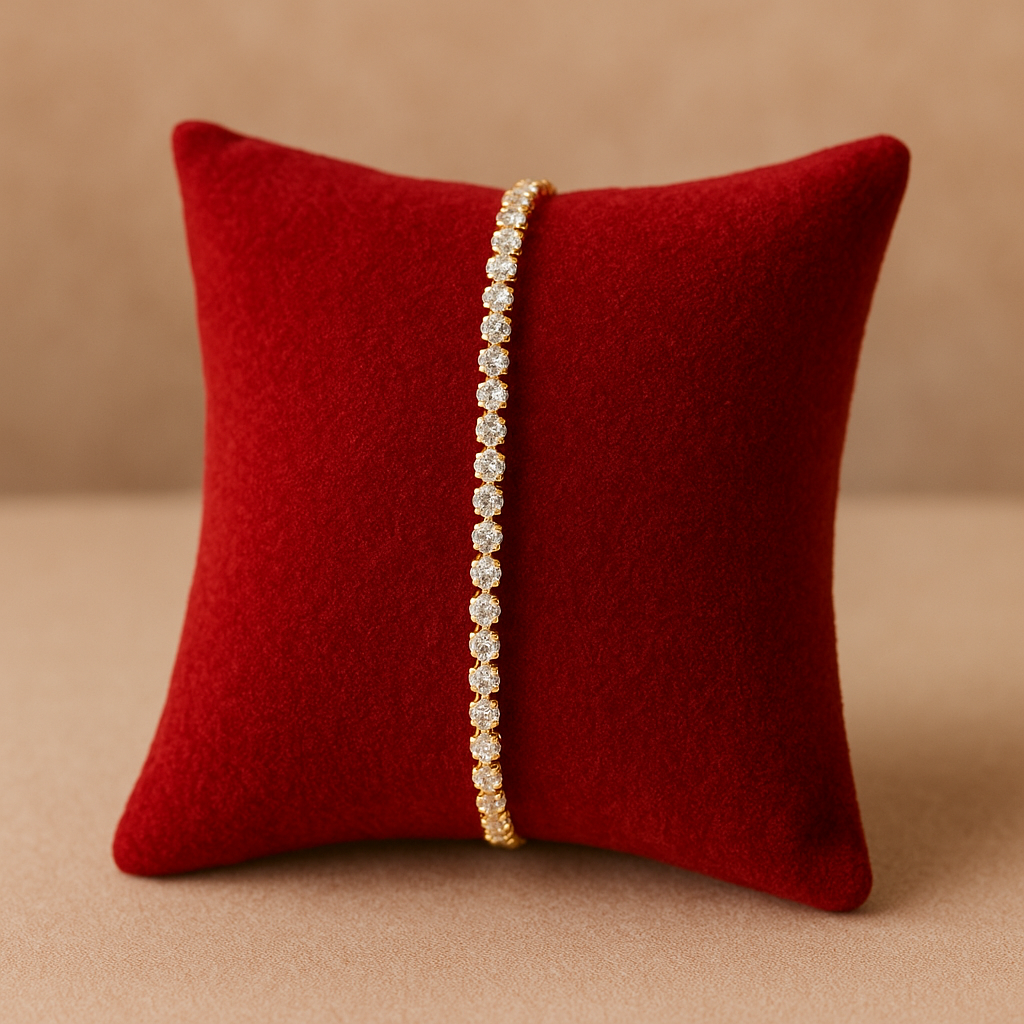 Raffiné et intemporel, le bracelet Line séduit par son élégance minimaliste. Une fine rangée de strass brillants montée sur une base dorée, parfaite pour sublimer votre poignet en toute occasion.