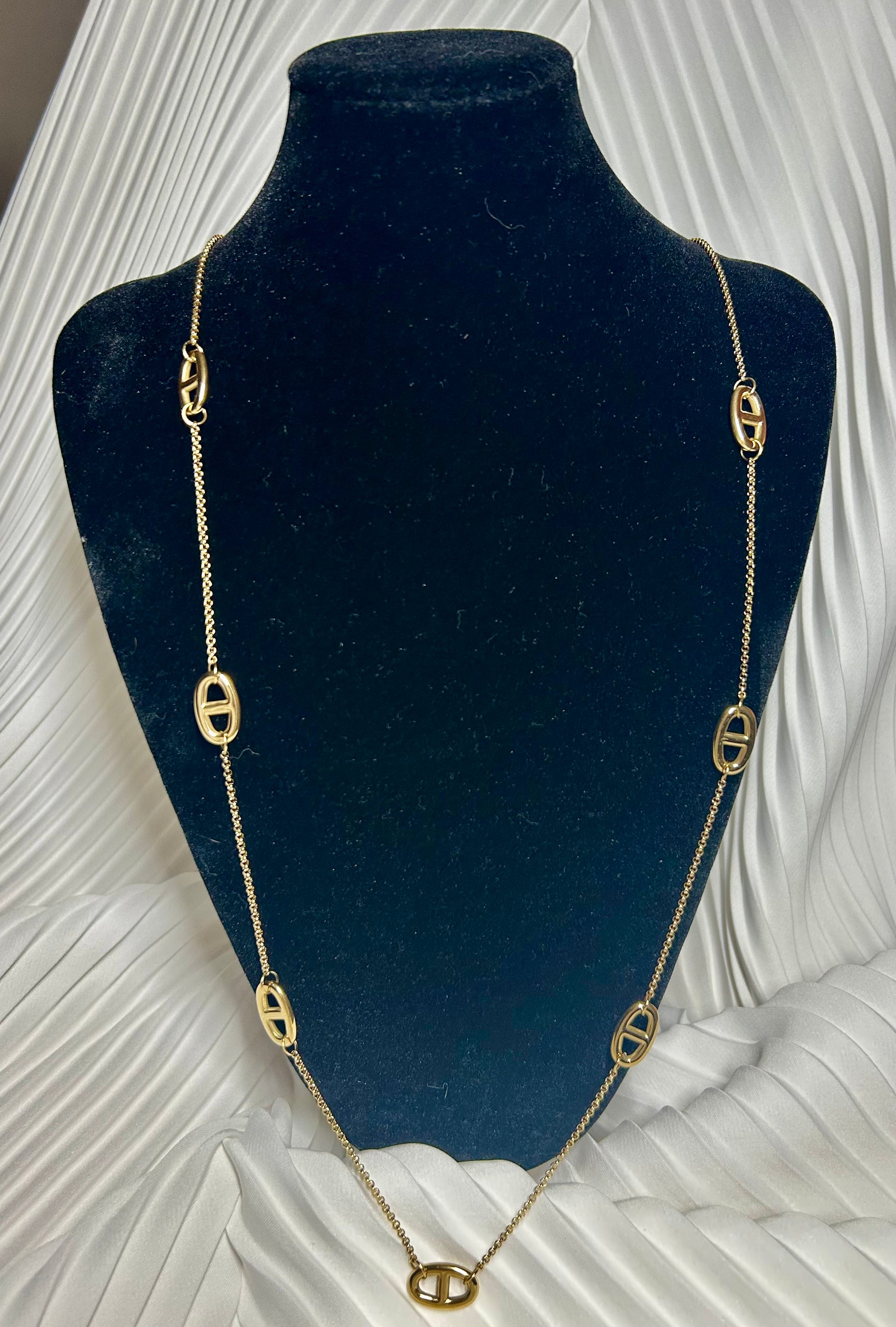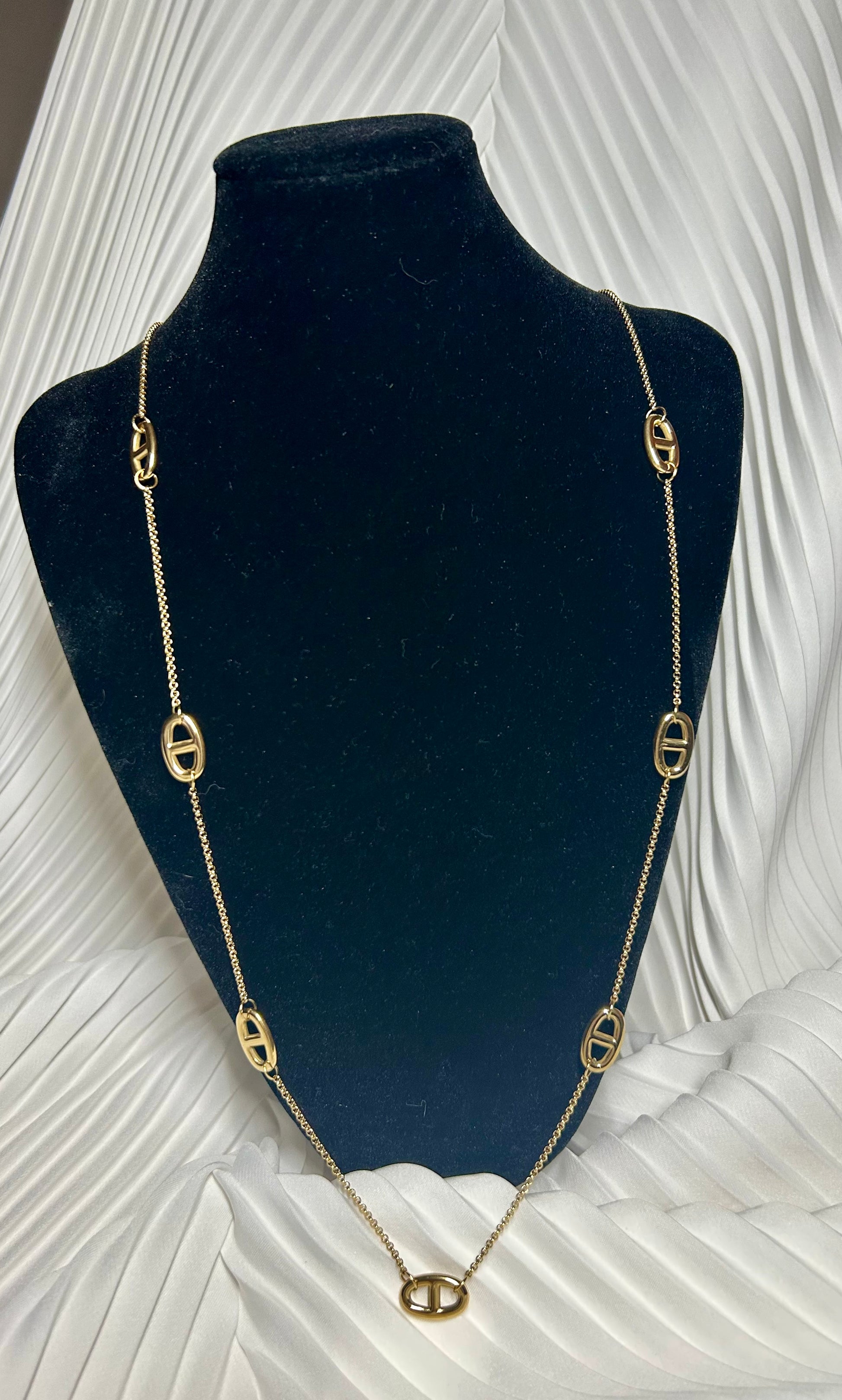 Le sautoir Deva incarne l’élégance moderne avec ses maillons dorés ajourés, finement répartis sur une chaîne longue et délicate. Minimaliste et sophistiqué, il sublime toutes les silhouettes, que ce soit porté sur une tenue habillée ou un look plus décontracté. Un incontournable chic.